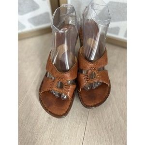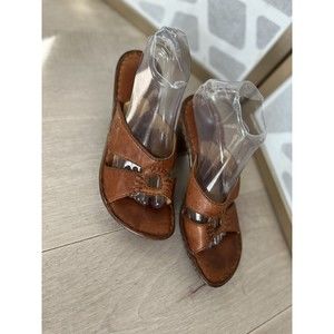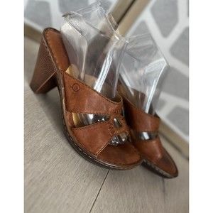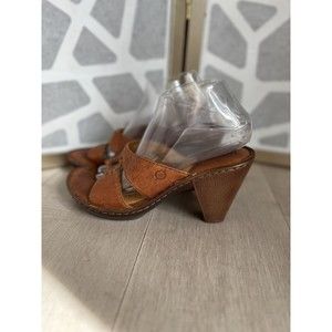 Born Women Leather Brown Heels Slip On Sandals Platform Sz 9 M/w