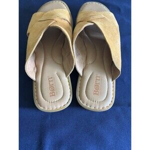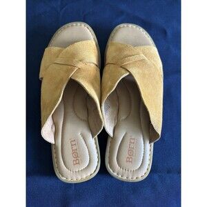 Born Women Leather Nubuck Slip On Sandals Yellow Size 8M