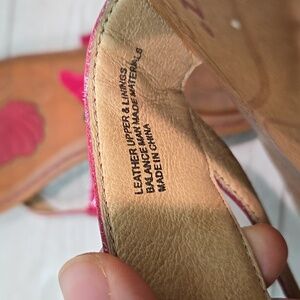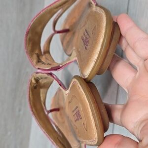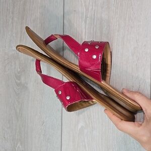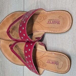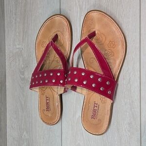 Born Women Leather T Strap Red Studded Flats Sandals Shoes Sz 8