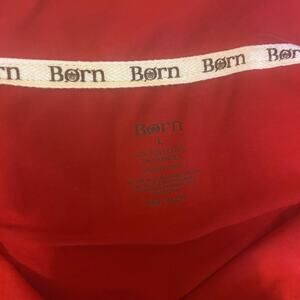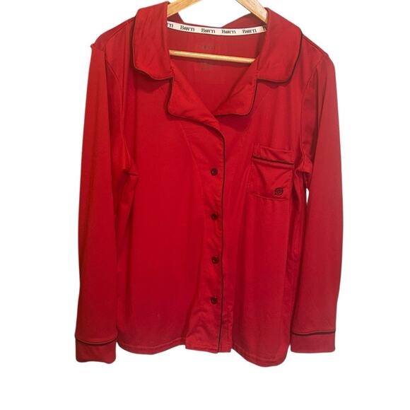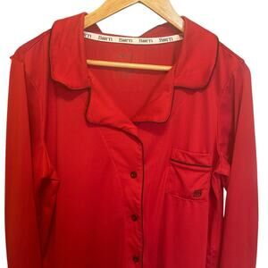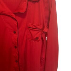 Born Women Pajama Top L Red Button Up Lounge Sleep Shirt Piped Trim Stretchy
