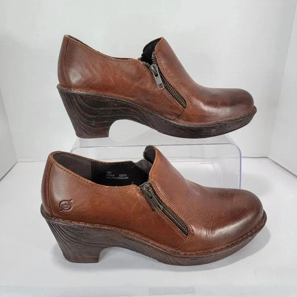 Born Womens 10 Brown Elliot Heeled Zipper Clogs Mules Normcore Academia Casual