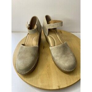 Born Womens 10M Nellie Mary Jane Clogs Sandals Shoe Beig Suede Wedge Boho SlipOn