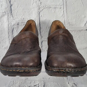 Born Womens 8.5 Toby II Casual Slip On Wedge Clogs Brown Leather Nursing Shoes