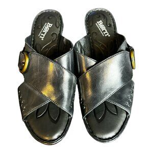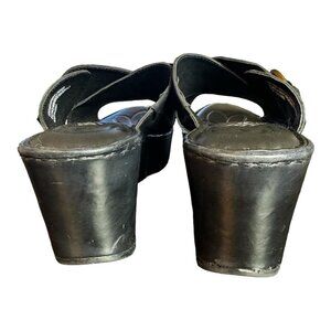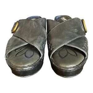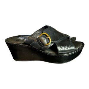 Born Womens 8M Slip On Black Platform Wedge Handcrafted Curstyn Leather Buckle