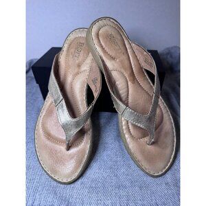 Born Womens Amelie Gold Crinkle Leather Comfort Sz 9.5 Slip On Thong Flip Flops