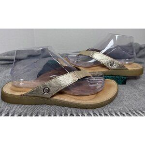 Born Womens Amelie Gold Crinkle Leather Comfort Sz 9.5 Slip On Thong Flip Flop