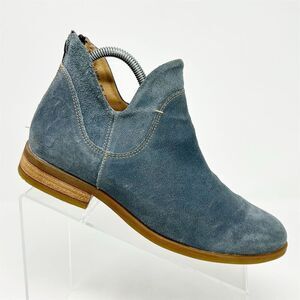 Born Women's Arula Blue Suede Ankle Booties Size 7.5 Casual Fall Back Zipper