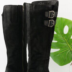 Born Womens Basil Riding Boot Size 8.5 M Tall Black Suede Block Heel Buckles