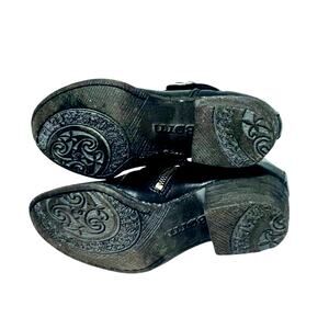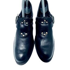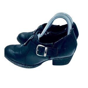 Born Women's Black Leather Buckle Booties Ankle Boots Low Heel Size 7.5