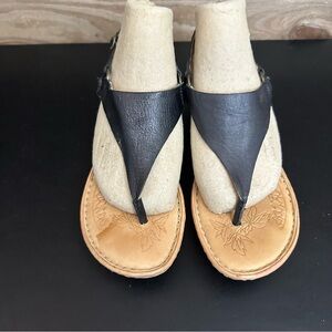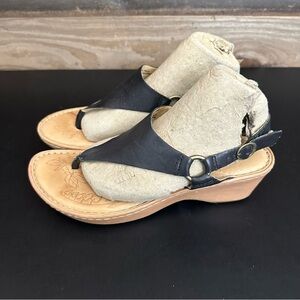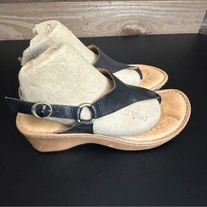 Born Womens Black Leather SlingBack Wedge Sandals Size 8 T-Strap Adjustable