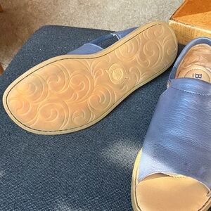Stylish blue leather sandals by Born. Open-toe design with comfortable fit. Perfect for casual outings. Like new, worn once. Super comfortable. Soft leather. Very flattering.