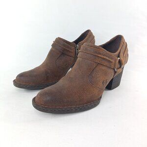 Born Womens Boots Size 7.5 Leather Booties Block Heel Western Brown