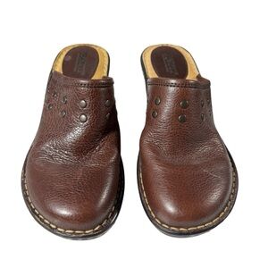 Elegant brown leather mules. Comfortable slip-on style. Ideal for casual outings.