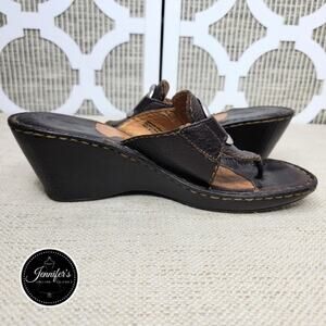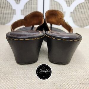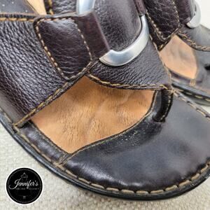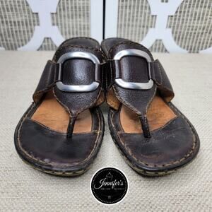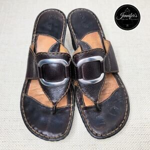 Born Women's Brown Leather Silver Buckle Detail Thong Wedge Sandals Size 7