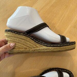 Born Womens Brown Leather Strap Open Toe Wedge Heel Sandals Shoes Size 7