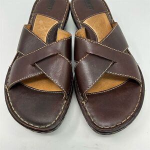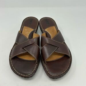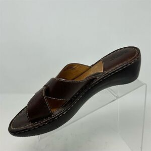 Born Women's Chocolate Brown Leather Slip-On Wedge Sandals Size 10 Summer