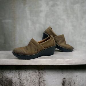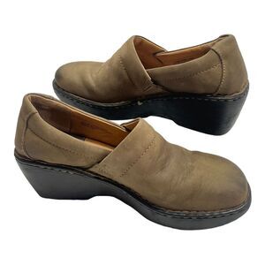 Born Women's Clog Size 9 Block Heel Tan Brown Leather Comfy Shoe