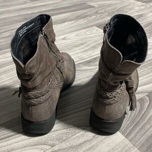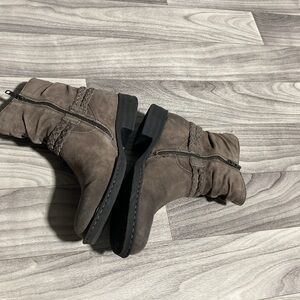 Born Women’s Gray Leather Ankle Booties – Zip Closure, Braided Tassel, Size 6.5