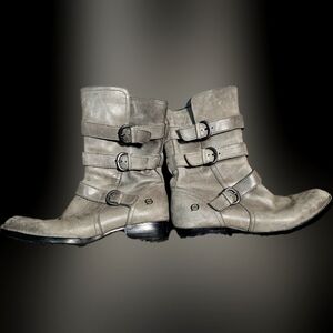 Born Women's Gray Leather Buckle Boots. Zip Entry Sz 8