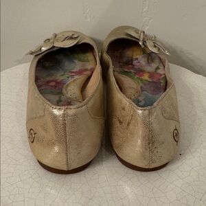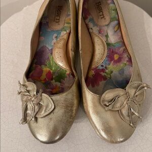 Born Women's Metallic Gold Leather Ballet Flats with Flower Accents Size 8.5 EUC