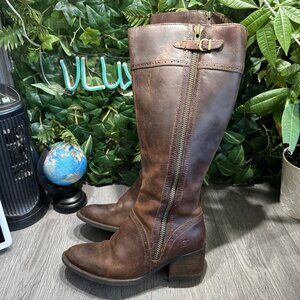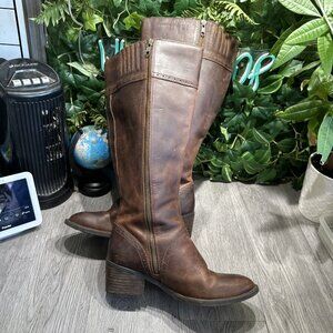 Born Women's Poly Riding Boot Size 8 M Tall Zip Block Heel Brown Leather