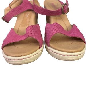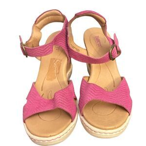 Born Women’s Puno Buckle Ankle Strap Cork Wedge Fuchsia Comfort Sandal Size 11M