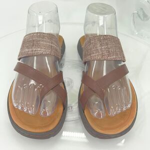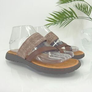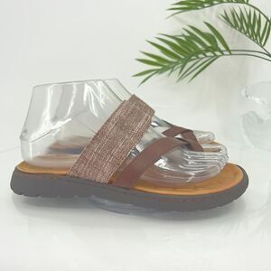 Born Women's Sandal Size 6 Brown Fabric Leather Thong Slide Flip Flop Strappy