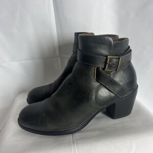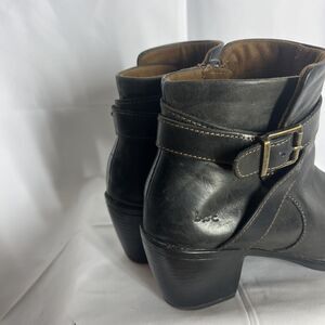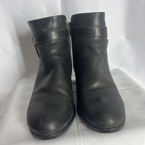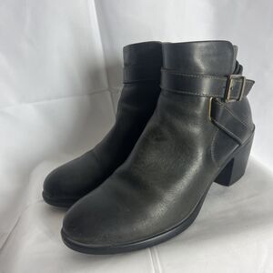 Born Womens Shea Boot Size 8.5 Black Leather Moto Bootie Block Heel Buckle Comfy
