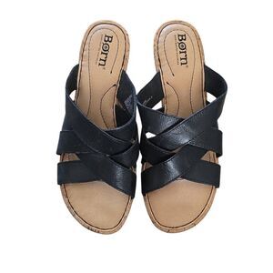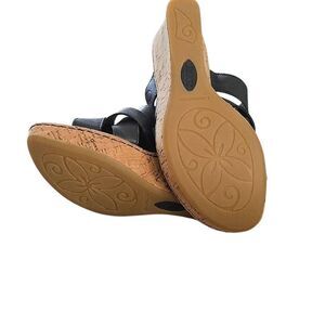 Born Women's Size 7 Black Tan Cork Leather Strappy Wedges