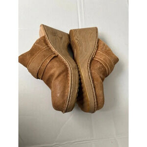 Born Nola Women’s Size 7 Tan Brown Distressed Suede Leather Open Back Slip On Wedge Platform Clogs