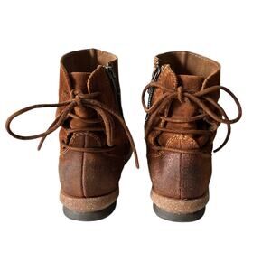 Features: Suede Lace Up Back, Distressed Detailing