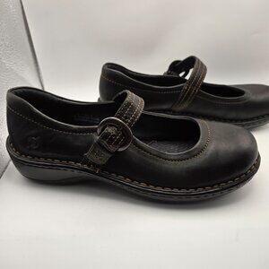 Born Women's Size 9 Black Leather Mary Janes Flats with Adjustable Elastic Strap