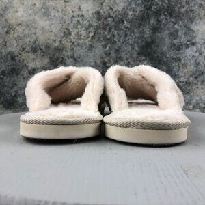 Born Womens Size LARGE L (9-10) Tan Cream Open Toe Slip On Fuzzy Slides Slippers