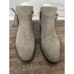 Born Women's Sz 7 Monikah Beige Suede Tassel Zip Open Heel Ankle Boots Shoes