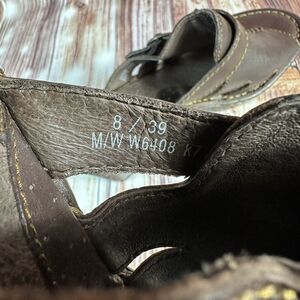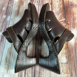Born Womens Sz 8 Brown Leather Open Toe Slip On Shoes Block Heel Sandals Buckle