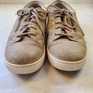 Born Women's Sz 9M Paloma Nubuck Zip Lace-Up Sneakers Taupe Distress