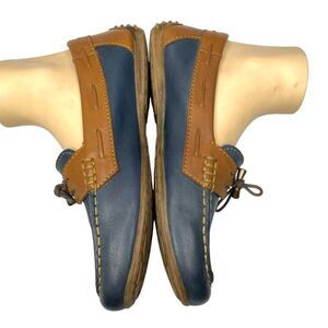 Born Womens Two Tone Brown Navy Leather Lace Detail Flat Loafer Size 7 M