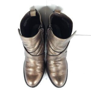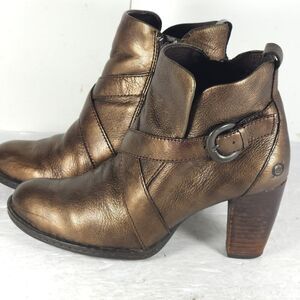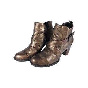 Born Women's US7,5 Brown Metalic Leather Strappy Buckle Ankle Boots Booties
