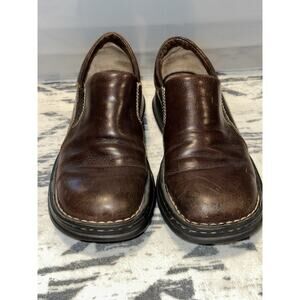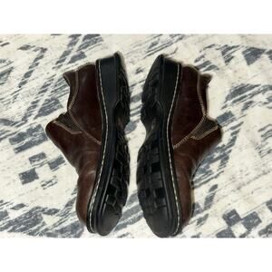 Born Womens W9934 Brown Leather Round Toe Slip On Clog Shoes Size US 7.5