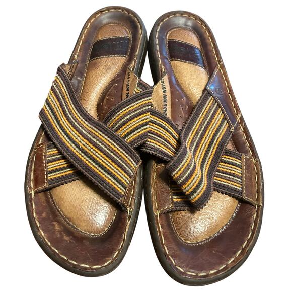 Born Womens Woven Fabric Criss Cross Slides Size 9 Brown Multi-Color