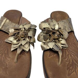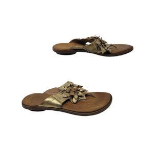 Born Womens Astrid Metallic Gold Leather Sandals Sz 11 Handcrafted 3D Flower