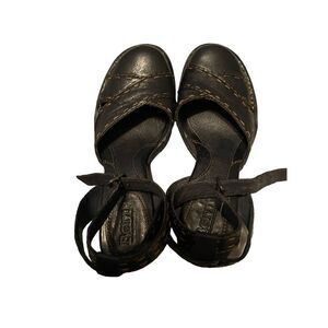 Born Womens Black Leather Ankle Strap Round Toe Court Heels Size 7