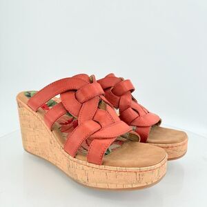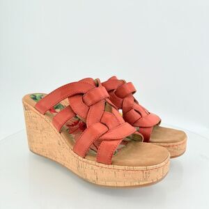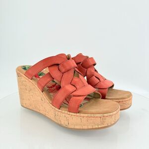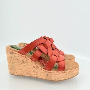 Born Womens Cora Sandal Size 10 Red Faux Leather Wedge Platform Mule Y2K Shoe