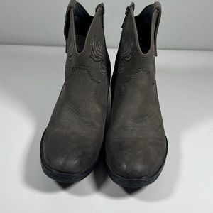 Born Womens Embroidered Leather Western Booties Boots Side Zip Gray Size 6.5