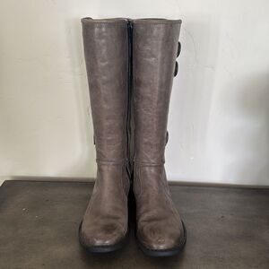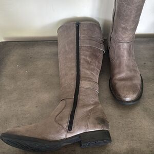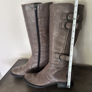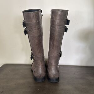 Born Women's Tall Knee High Ash Leather Boots Riding Boho Buckle Size 6.5 EUC