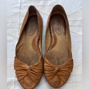 Born Worn Women's Tan Leather Flats Rounded Toe Comfort Slip on Shoes Size 8 M