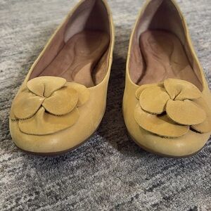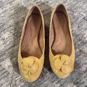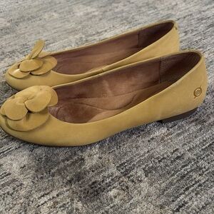 Born Yellow Flower-Embellished Women's Flats - size 6.5 - leather