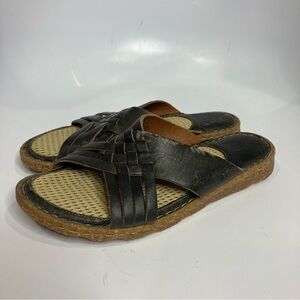 Born black leather slip on sandals slides size 10