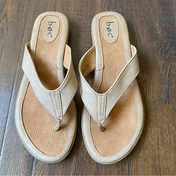 B.O.C. is known for using soft leather, natural linens, and woven fabrics in their footwear. These sandals are appreciated for their comfort and casual style, with some customers finding them suitable even for conditions like plantar fasciitis.