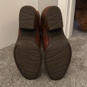 Smooth leather foot and top with “raw” type leather shaft. Gorgeous brown color